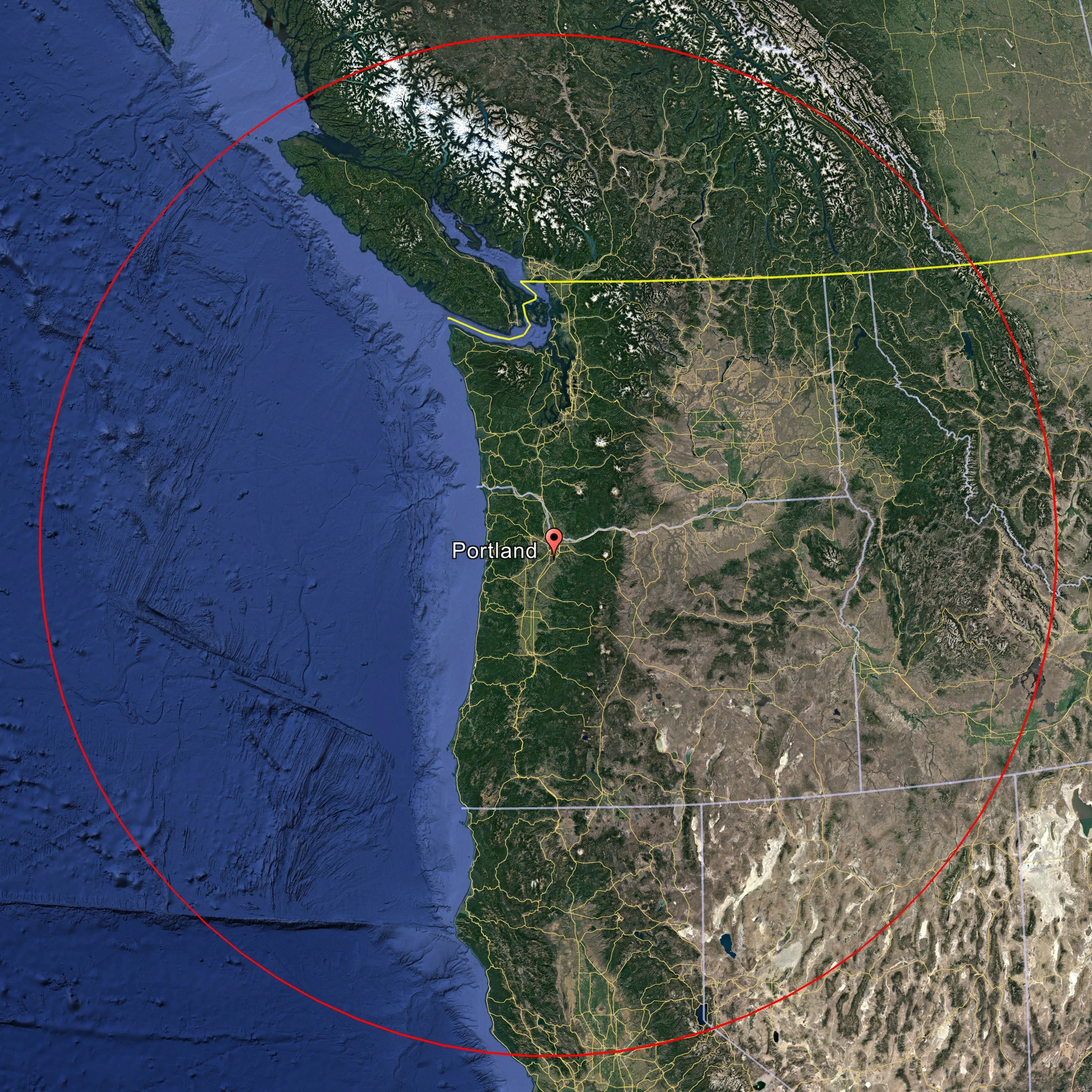Taking these limitations into account, we are left with the counties in the map below, which encompass all of Oregon and Washington, as well as parts of California, Idaho, and British Columbia.